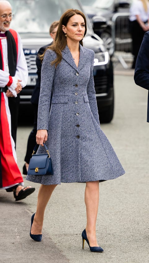 Kate Middleton Steps Out in a Stunning Blue and White Coat Dress in Manchester