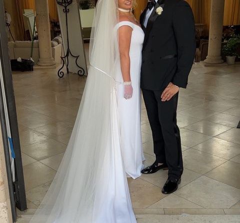 Spears’ exquisite dress had a portrait neckline and a trail of pearl buttons down the back, according to People. Staying true to the singer’s sexy personal style, the gown also featured a front slit. The piece took 700 hours to make, all hand-crafted in the Versace Atelier. The silk tulle veil, accented with a silk satin trim, and matching satin pumps added finishing touches to the look.