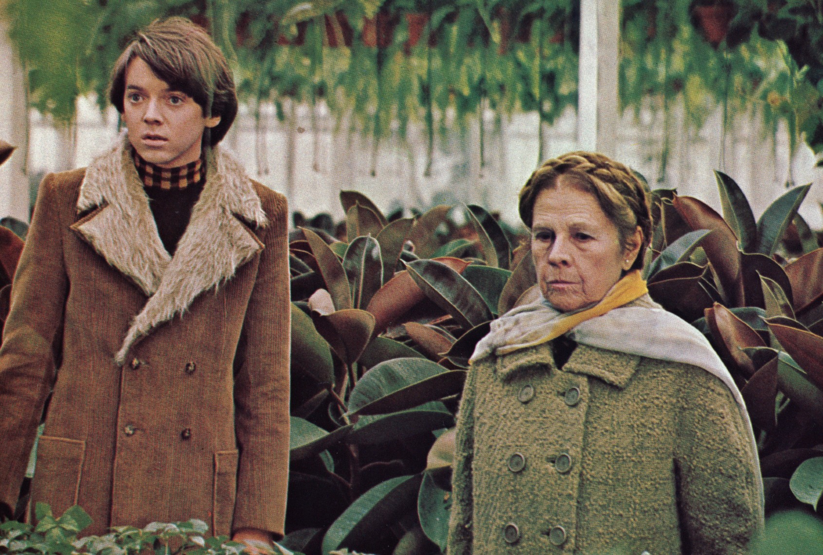 After stealing a tree from town to transplant in the forest, Harold and Maude smoke hookah in her living room, dressed in kimonos.